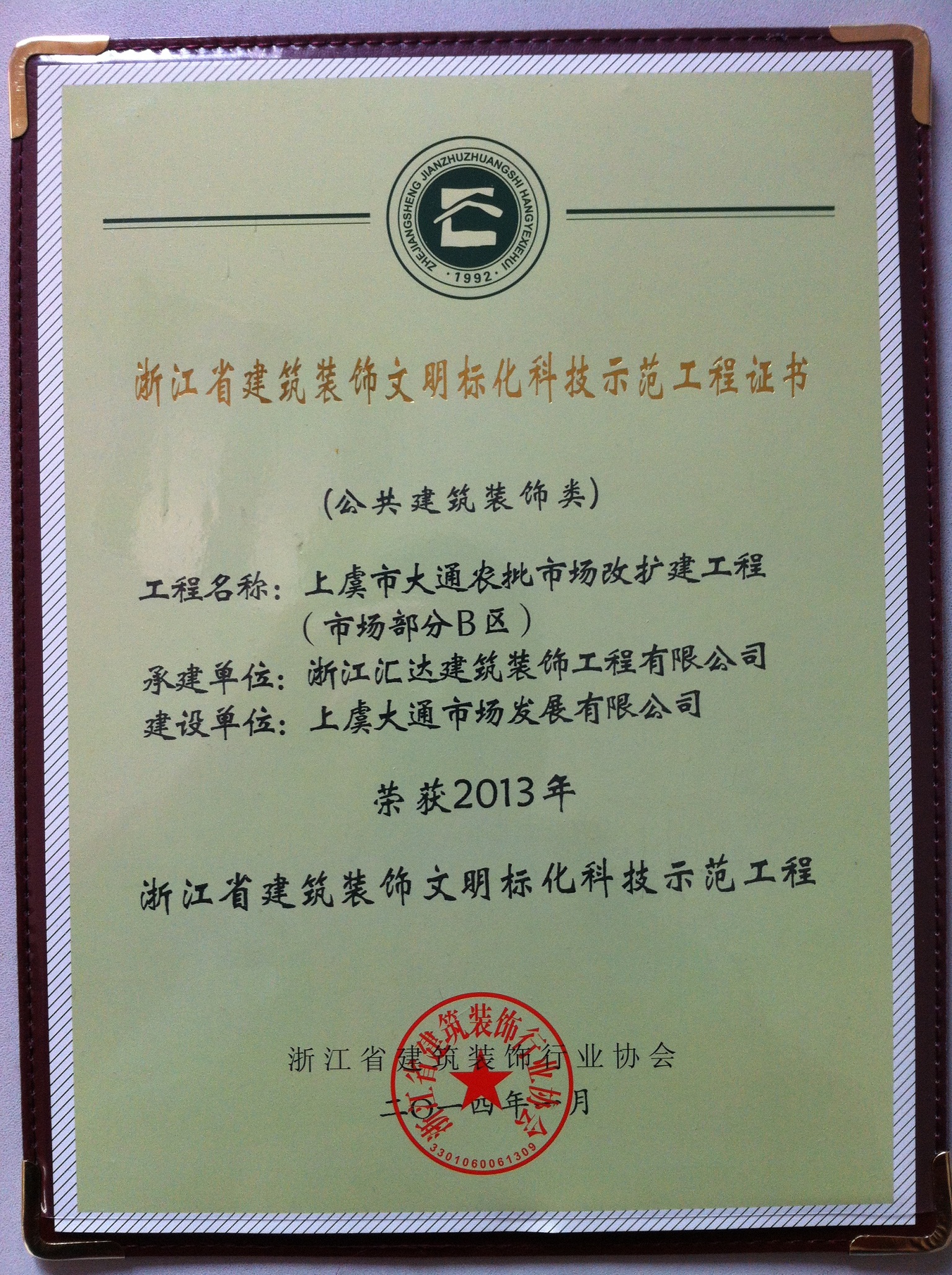 2013年度浙江省建筑装饰文明标化科技示范工程